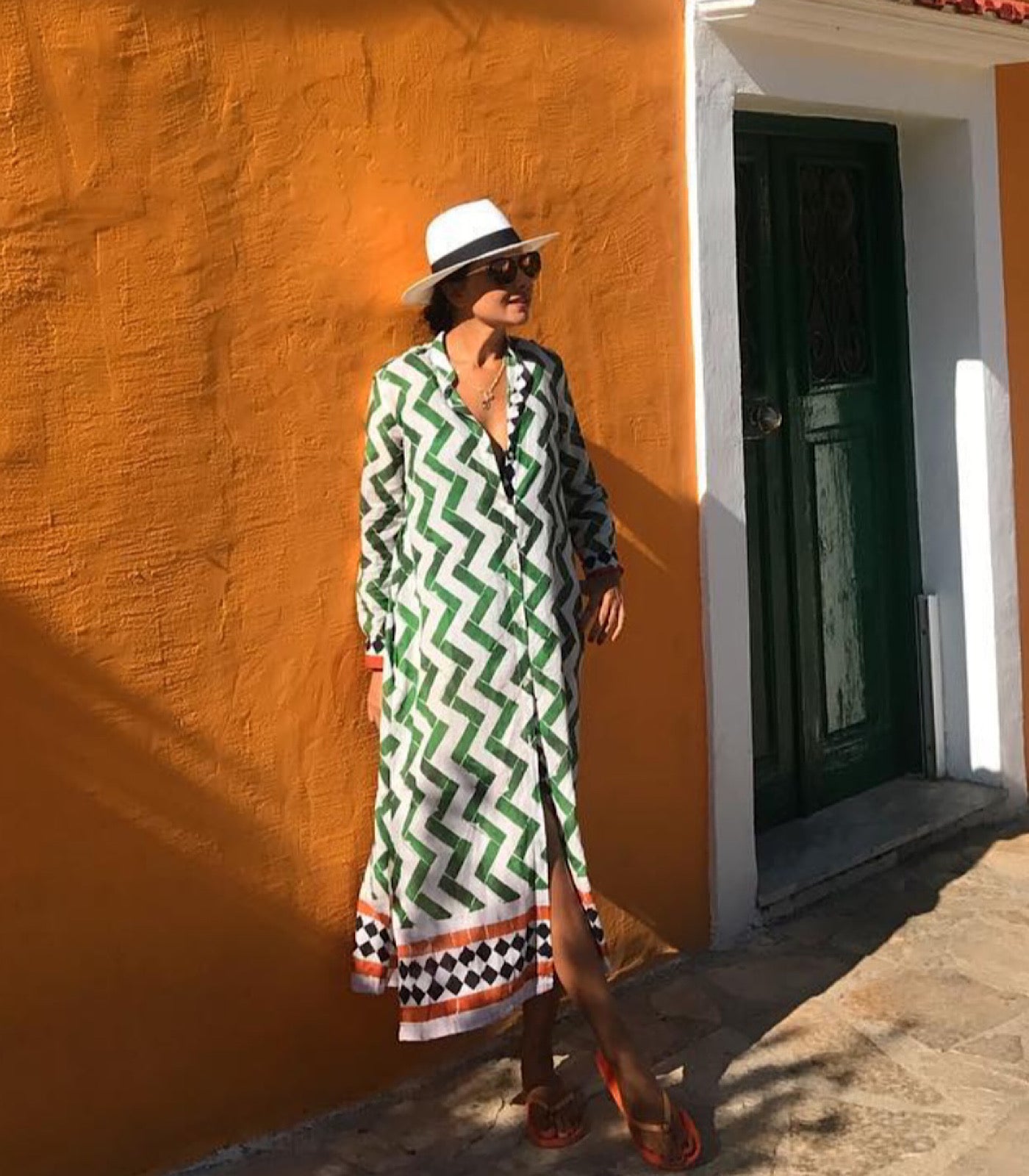 Ella Gömlek Elbise Chevron Yeşil