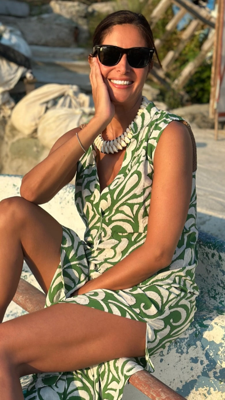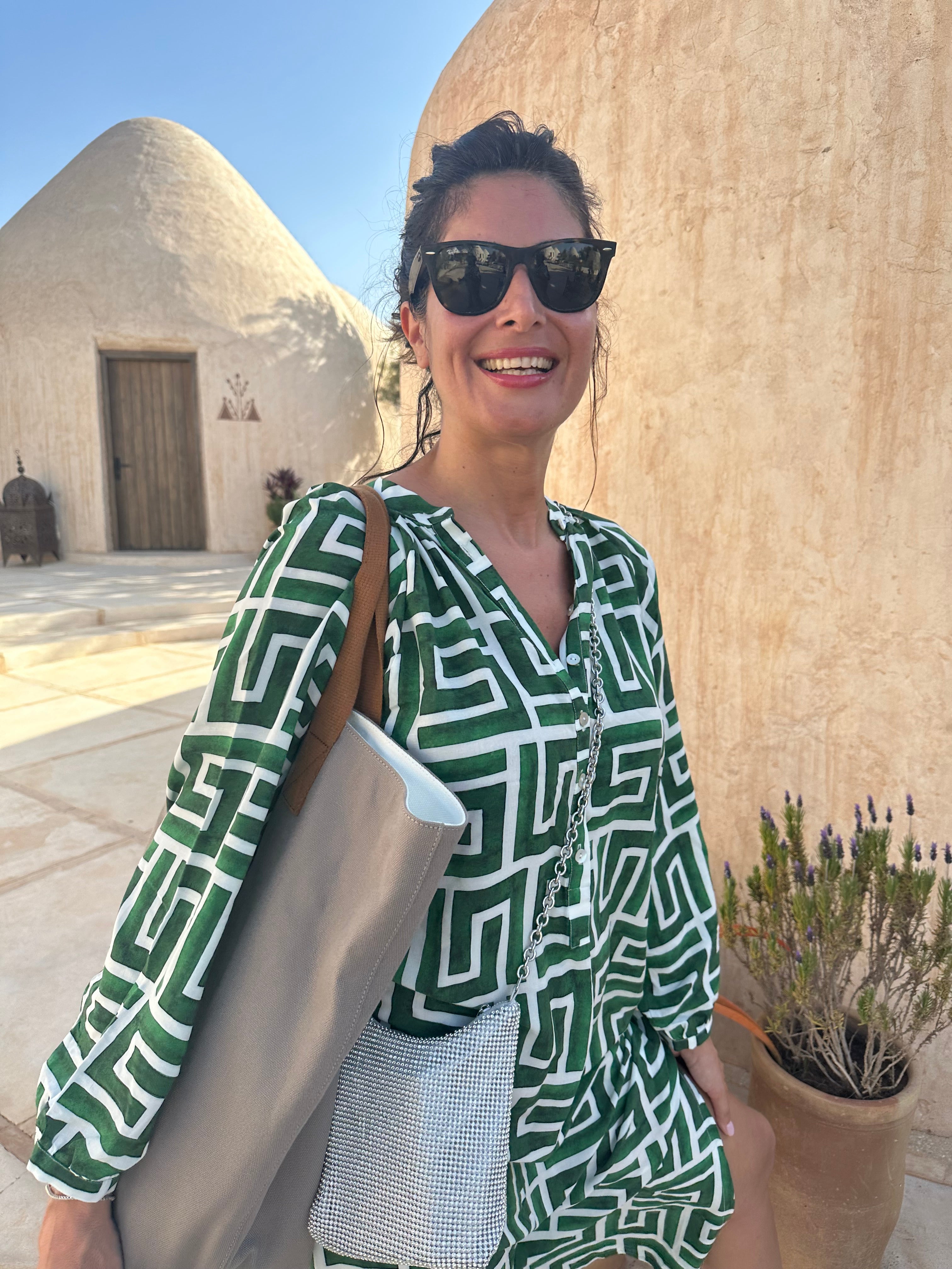 Mila Gömlek Elbise Aztek Yeşil