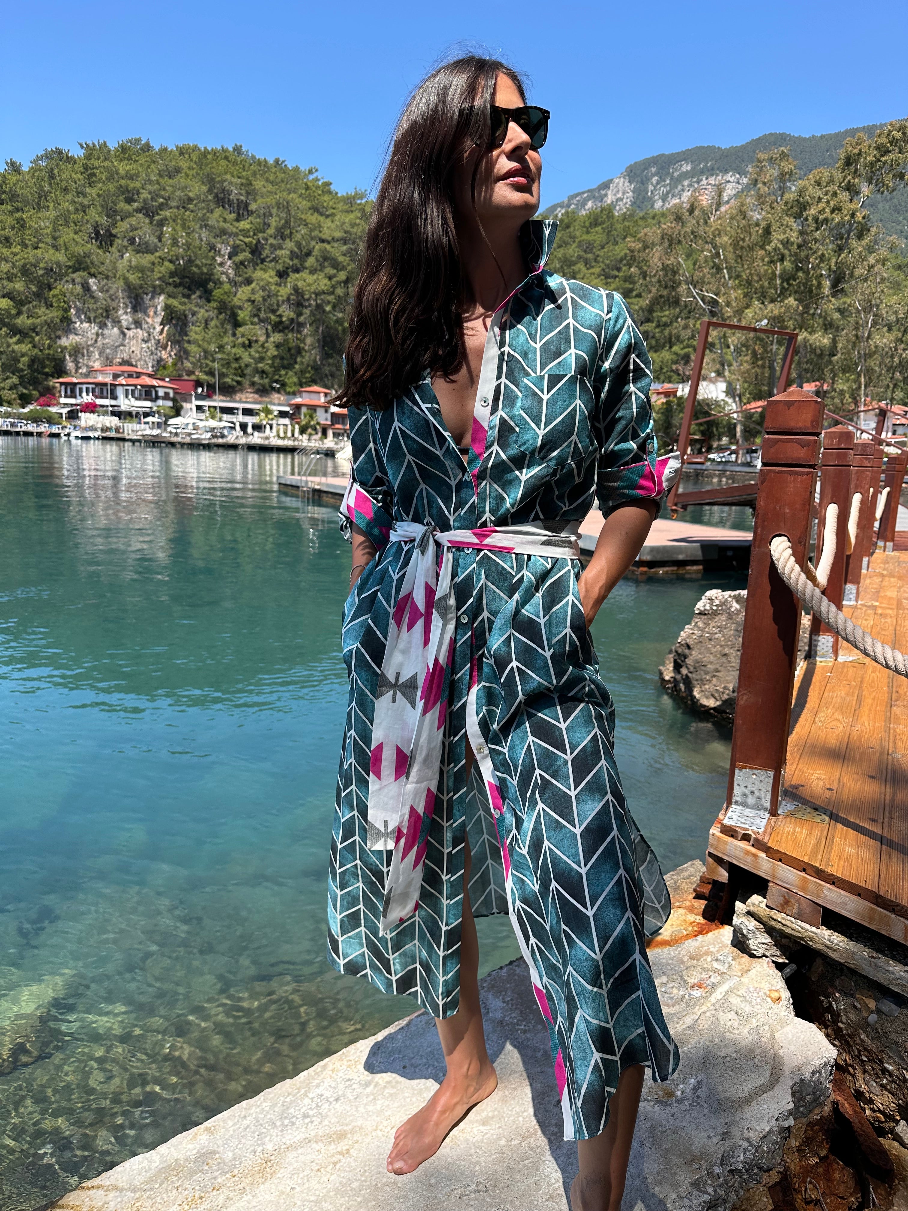 Karel Gömlek Elbise Balıksırtı Petrol
