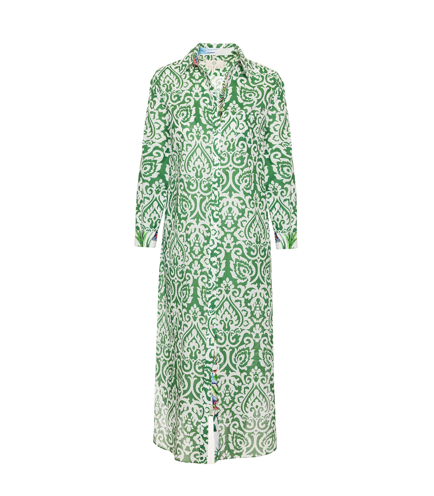 Önden düğmeli , gömlek yaka , standart kalıp , ön pat ve manşet içinde kontrast kumaş , 100% organik pamuk , Türkiye’de üretilmiştir.