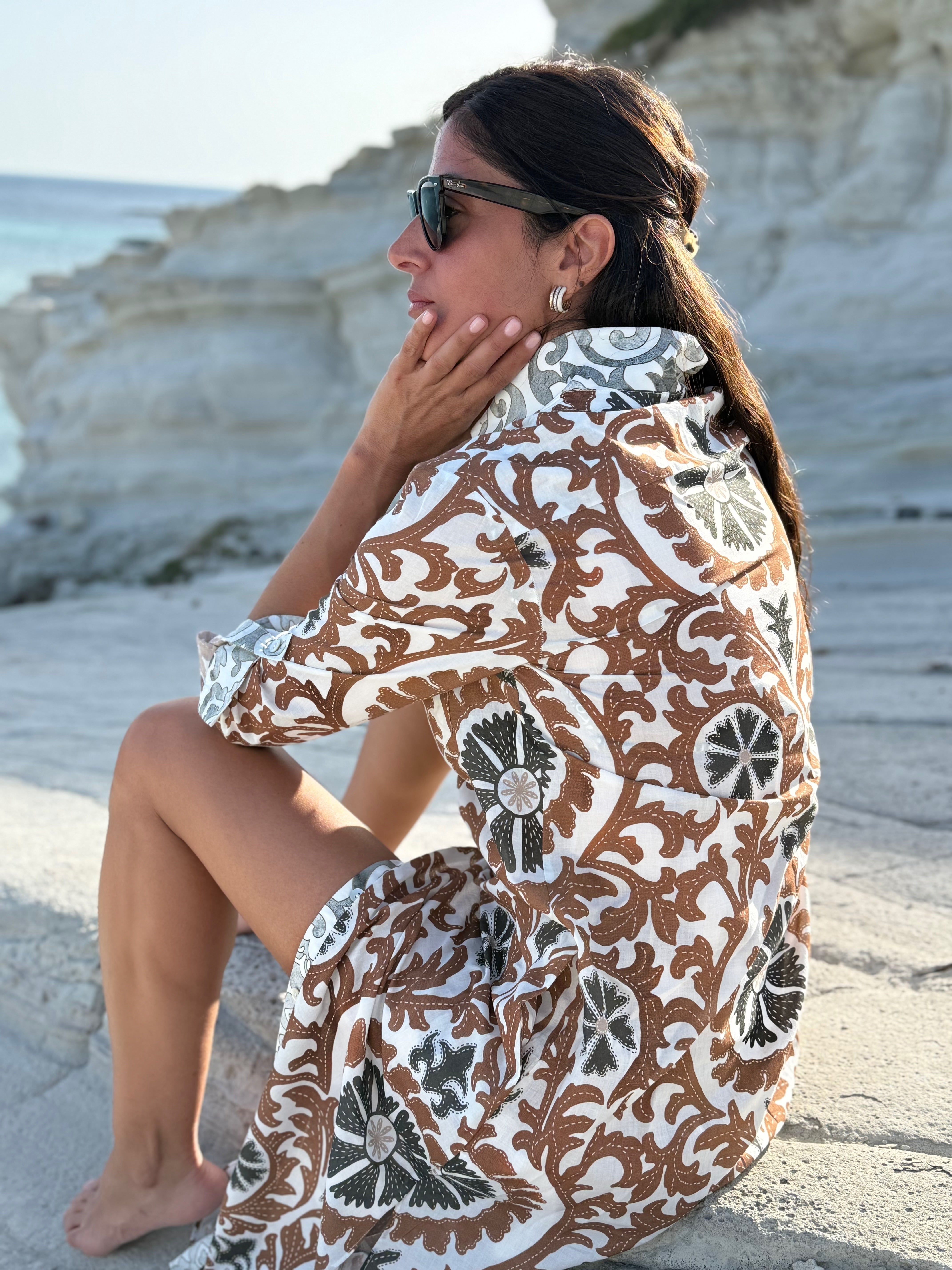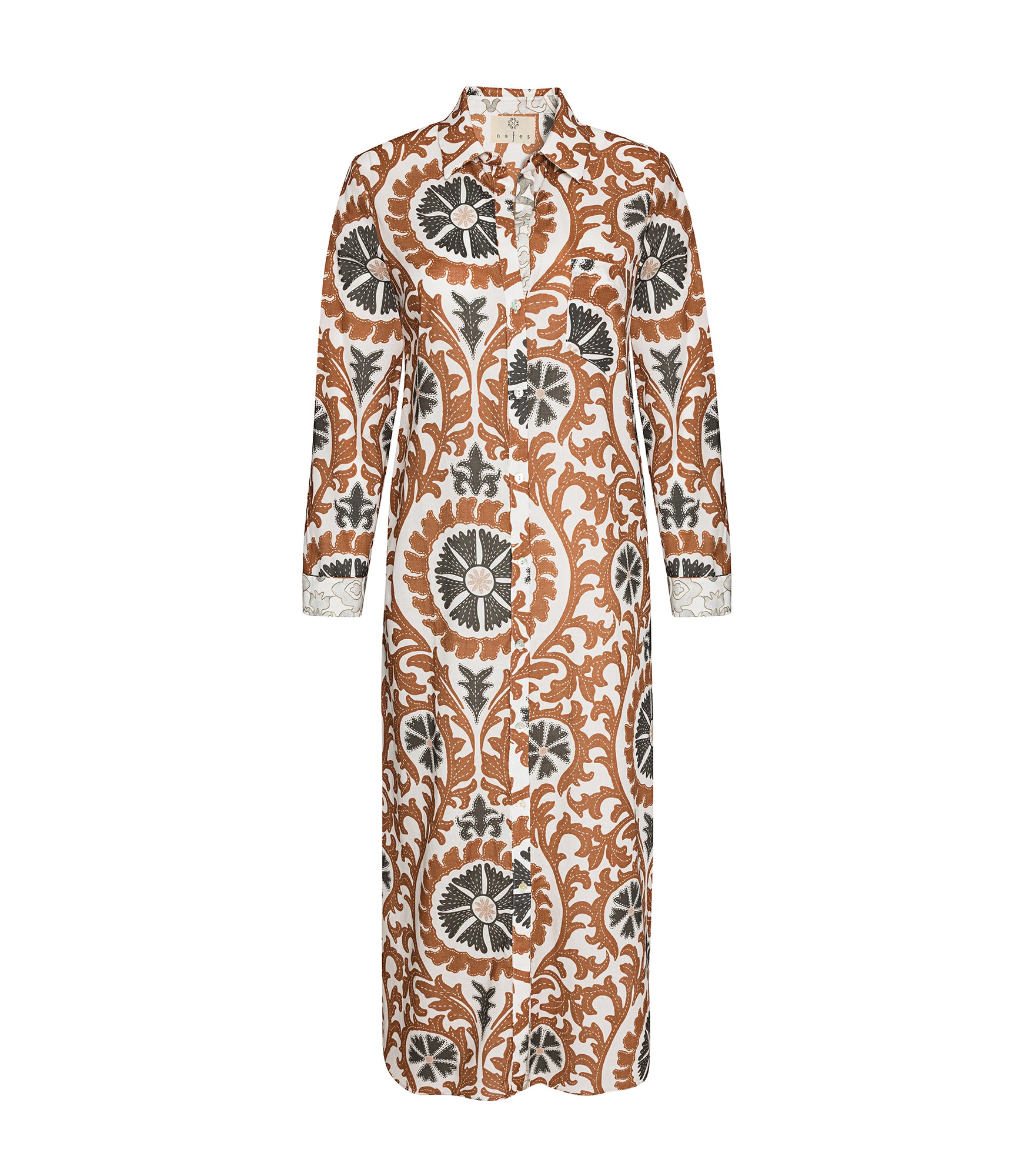 Karel Gömlek Elbise Damask Suzani Tarçın