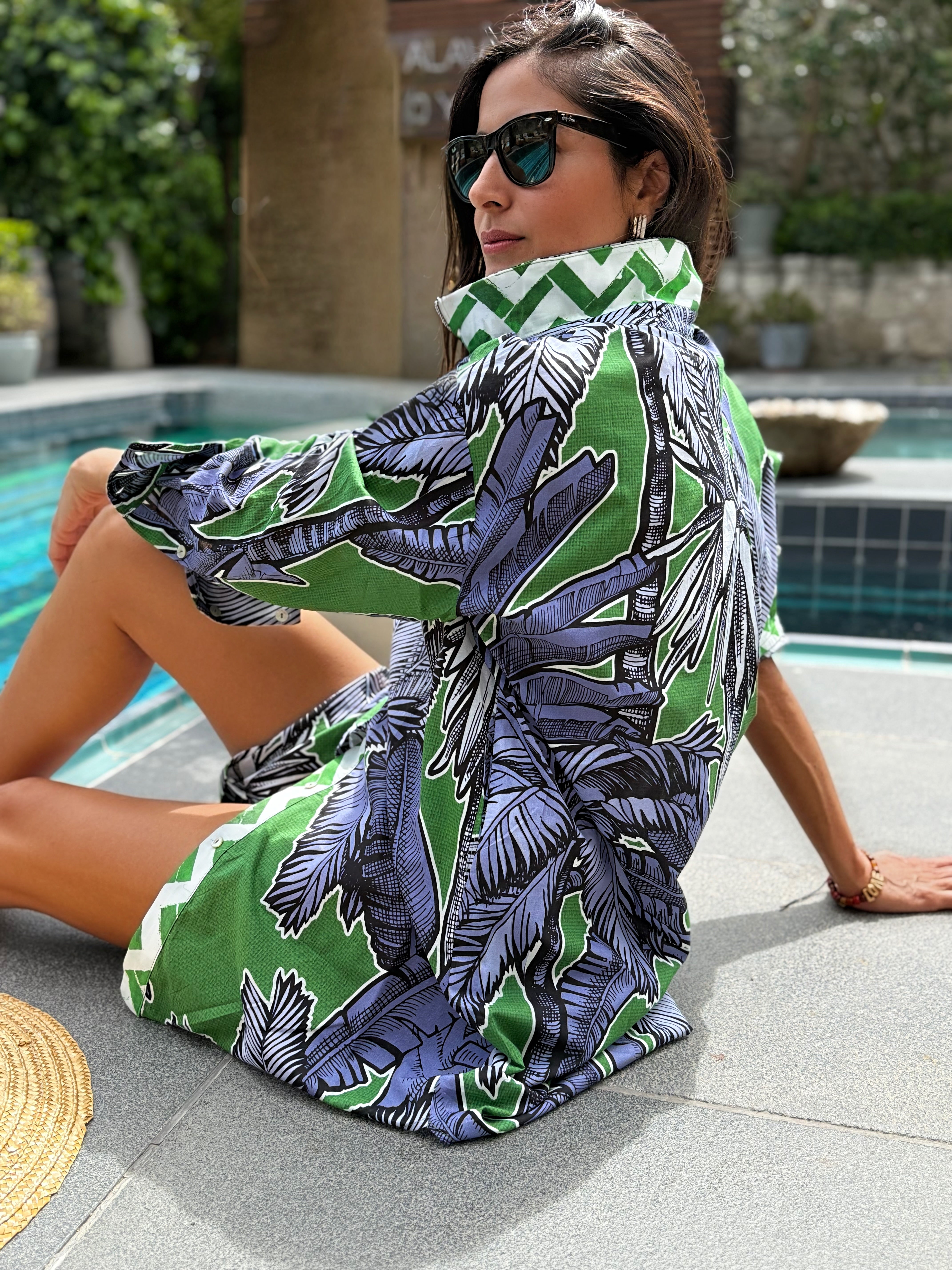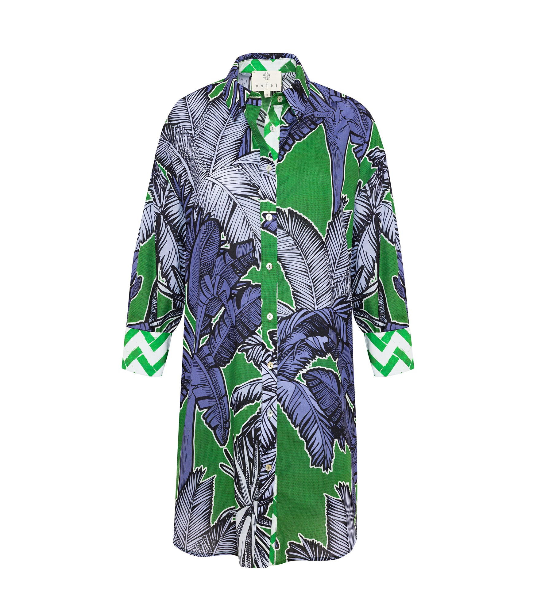 Mara Gömlek Elbise Tropikal Palm Yeşil Mavi