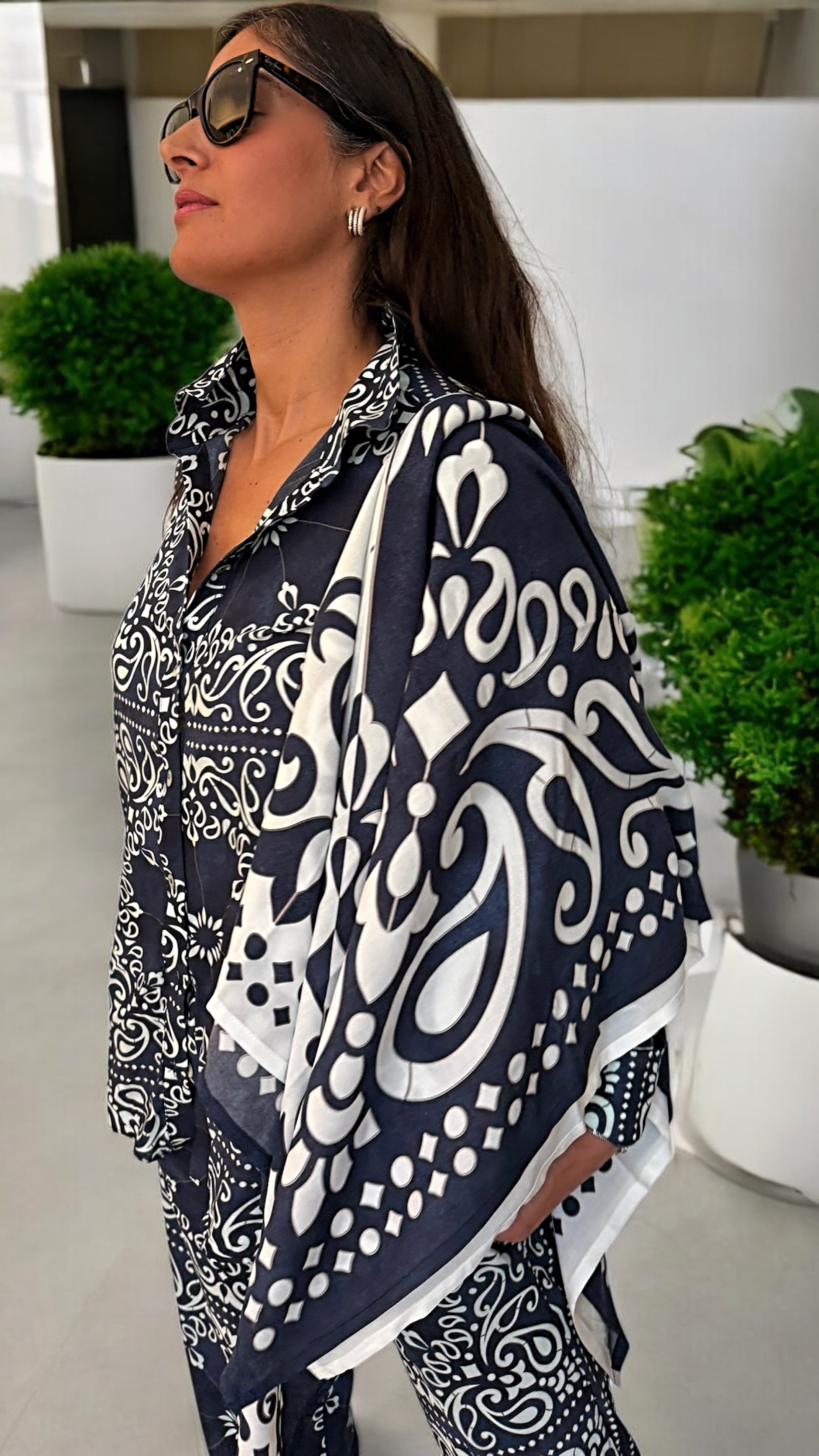 Istanbul Şal Tile Paisley Mix Lacivert Beyaz