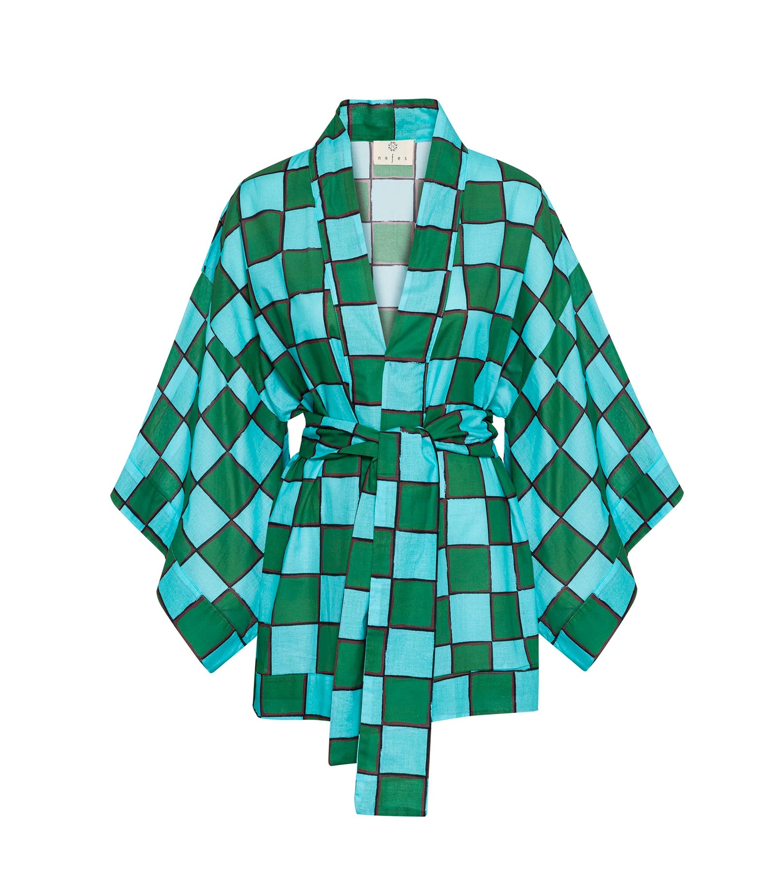 Kimono Dama Mavi Yeşil